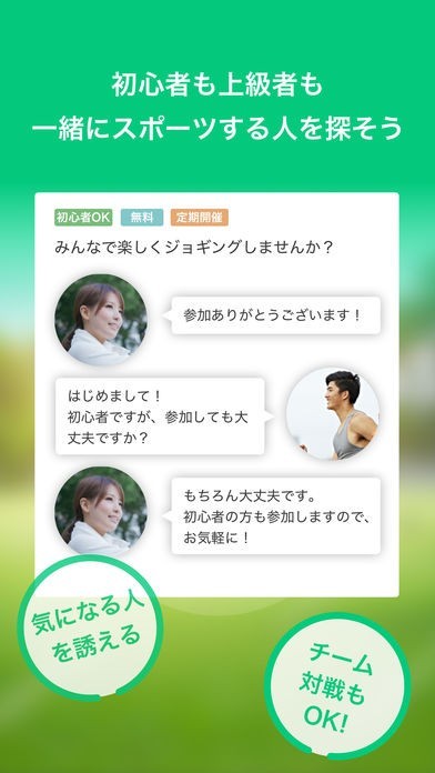 一緒にスポーツを楽しむ仲間を探すことができる!