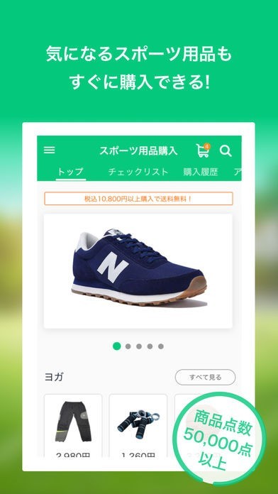 出会った仲間たちとお揃いのウェアやシューズをそろえたり、アプリを見ながらショッピングも楽しめます。急な破損や紛失などにも、すぐにお目当ての商品にたどり着けるのでストレスがありません。