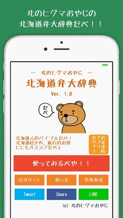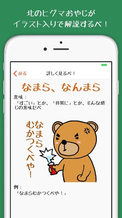 詳細ページで、北海道弁の意味や、使い方がわかるべ