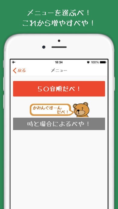 ※バージョン1.0.5では、[50音順だべ!]のみだべ