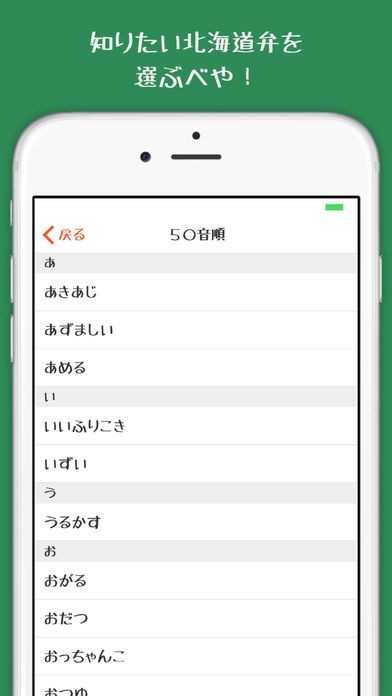 北海道弁の一覧が出てくるから、気になる北海道弁を選ぶべ