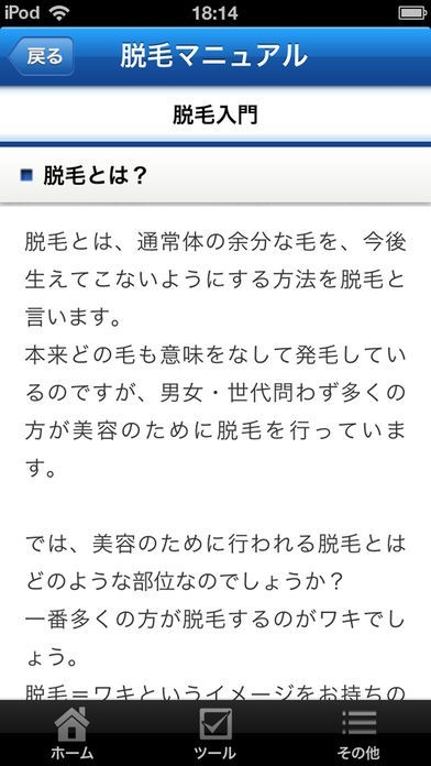 ムダ毛のないつるつるのボディを手に入れることは女子にとってとても重要な課題の一つです。これまでは自力で脱毛をしていたとという方も進学や就職をきっかけに脱毛サロンに通う頻度が増えてきます。このアプリを使えば、脱毛に初めて挑戦するという方にとって知りたい情報を学ぶことが可能です。脱毛の定義という初歩的なところから始まって自分に合ったサロンに選び方やコースの特徴など内容は多岐にわたります。あまり聞く機会がない脱毛に関する悩み相談もできちゃいます。