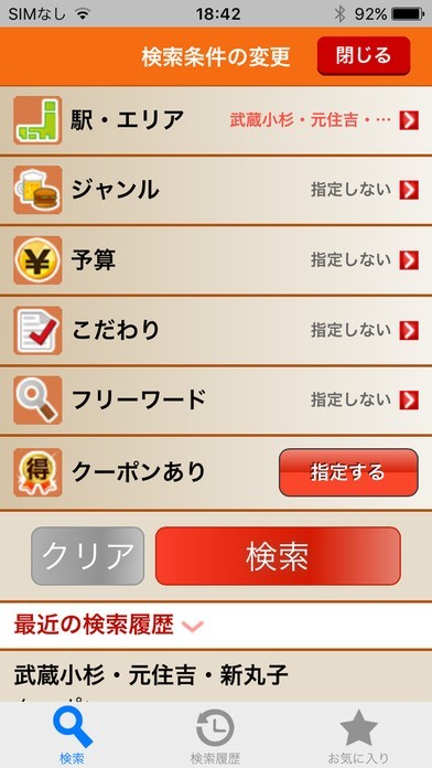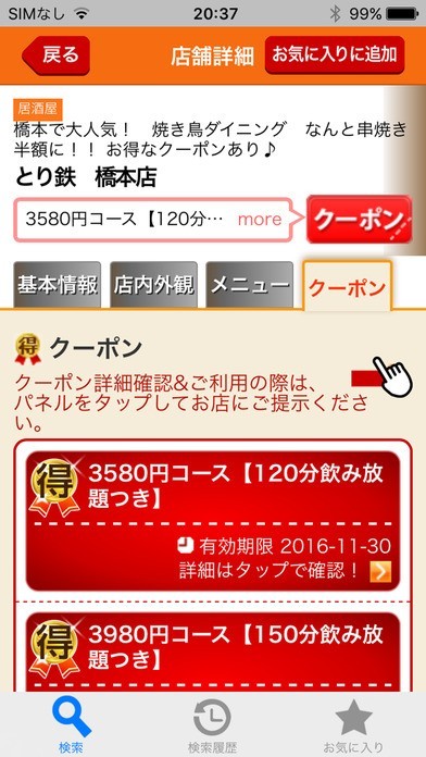 もう一度行きたいお店は履歴検索機能でチェック!