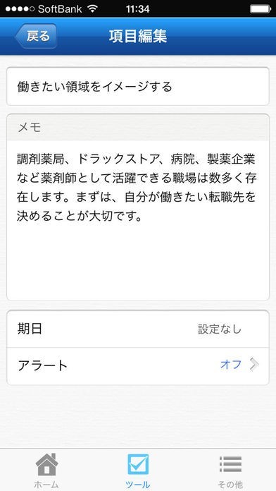チェックリスト機能をつかって、転職活動に漏れがないかを