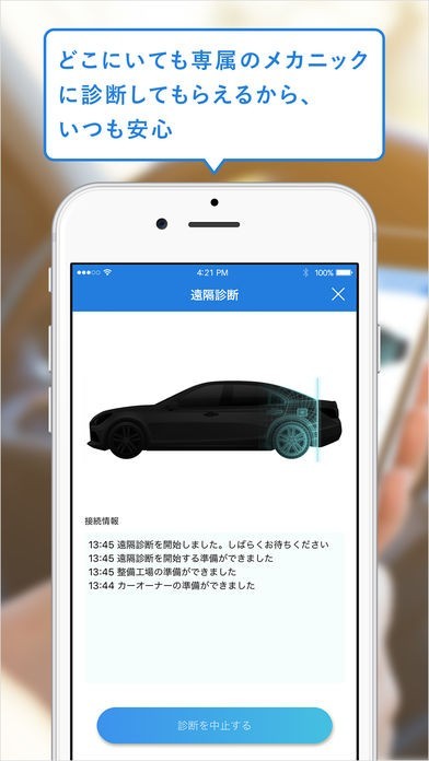 ※ショップ登録機能を使えばどこにいてもメカニックが遠隔でクルマを診断してくれます
