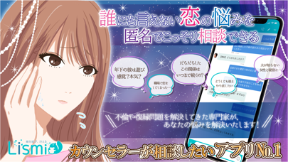 App Storeより引用リスミィは、恋愛や結婚など、恋の悩みに特化したチャット相談アプリです。恋愛に関するいろいろなお悩みを、弊アプリを通じて日本全国の恋愛カウンセラーや結婚アドバイザーたちに相談することができます。