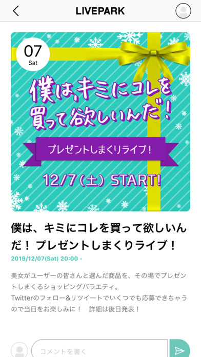 ・ クイズや投票、謎解きなど、ライブ動画企画に参加できる機能も充実。