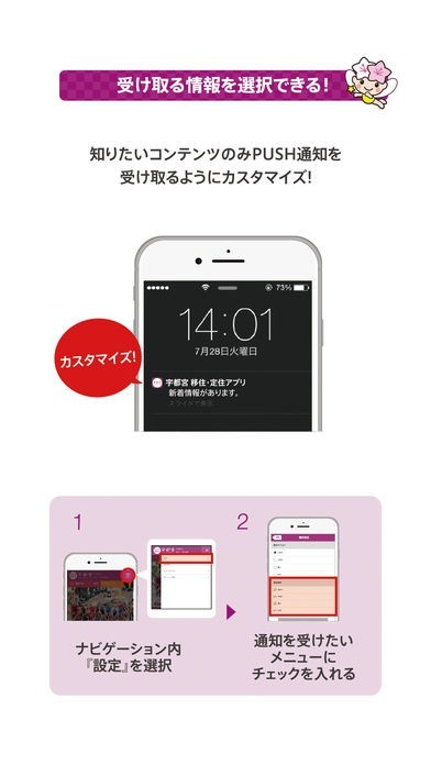 ○欲しい情報は「プッシュ通知」機能で、最新の情報を見逃すことなく受け取れる!