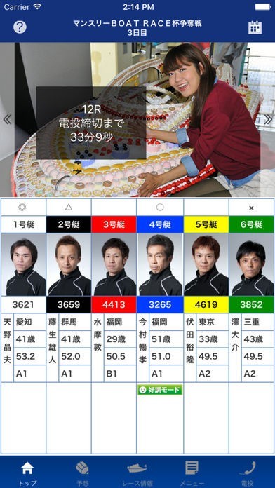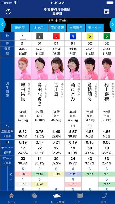 このアプリケーションでは、ボートレースの出場選手や、モーター情報だけではなく、投票オッズや過去の試合結果などボートレースの予想には欠かせない情報がすべて見ることができます。
