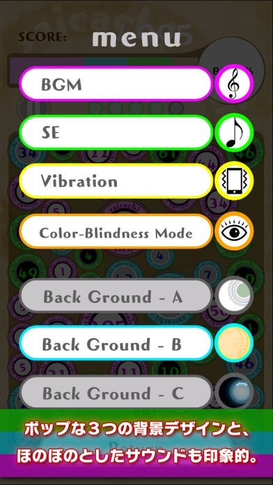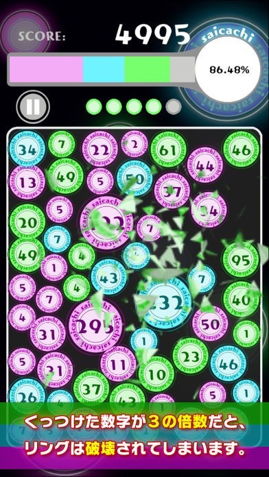 『saicachi』は、3の倍数を避けながら、数字が描かれた同色の塊同士をくっつけて大きな数字の塊を作り出して高得点を目指す新感覚パズルゲームです!