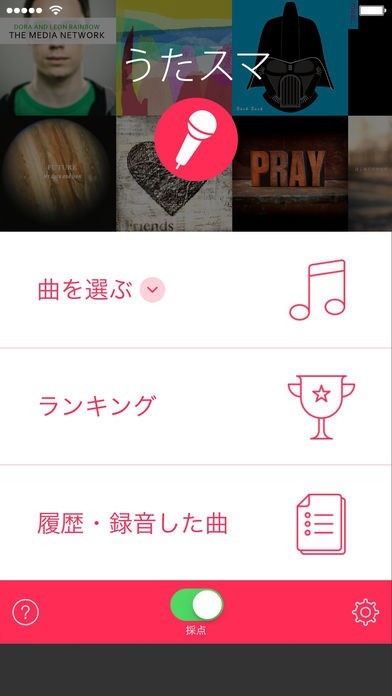 「無料カラオケ採点うたスマ」は、自分のiPhoneに保存されている曲をカラオケや録音、採点を楽しむことができます。全てのコンテンツを無料で楽しむことが可能です。まず、曲選択を押すと、ミュージックアプリに入っている曲から好きなものを選ぶことができます。iPhoneに入っている曲ならばなんでも好きな曲を歌えるというのもポイントです。そして、歌詞を自動でネット検索して表示させることもできるので、実際のカラオケさながらのように歌えてとても便利です。 ボーカルの声のONOFFはボタンで簡単に切り替えることができますので、曖昧な部分はONにして練習したり、慣れてきたら全部OFFで、など使い分けができます。また、録音機能を使えば普段は聞けない実際の自分の声を聞けるので、カラオケの練習をしたいという人にはぴったりです。