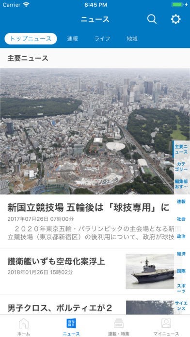 経済やスポーツといった、あらゆるニュースが読めるアプリです。毎日新聞社によって選定された意義のある記事のみを提供していて、「紙面ビューアー」によって毎日新聞の一面を見たり、「一気読み」で効率的に世界の動向をチェックできます。毎日IDを登録してログイン情報を保持することで、無料で人気コラムを閲覧することも可能です。