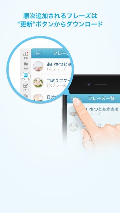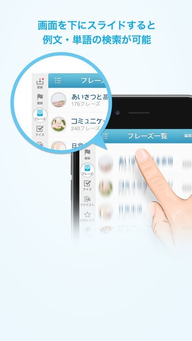 おもてなしや自己紹介・ビジネスなど60以上ものシーンに分かれているため、フレーズが見つけやすいです。ネイティブによる発音を聞くこともできるので、発話練習にもなります。