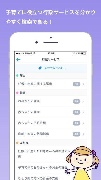 子育てについて支援を受けられるように各自治体の情報をまとめたアプリ