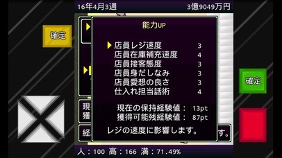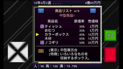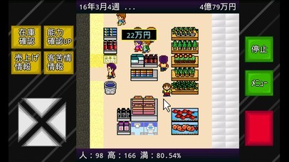 お店によってひたすら商品を充実させたり、スタッフの接客技術を向上させたりと、特色のあるお店作りを行うことができるのが本作の魅力の一つです。お客さんの満足度を高めてみましょう。