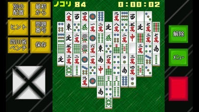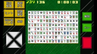 App Storeより引用麻雀牌で遊ぶ、おなじみの四川省で、二角取りとも呼ばれ、麻雀牌で遊ぶゲームとして上海(麻雀ソリティア)と並び有名です。