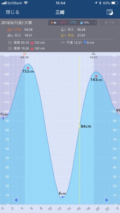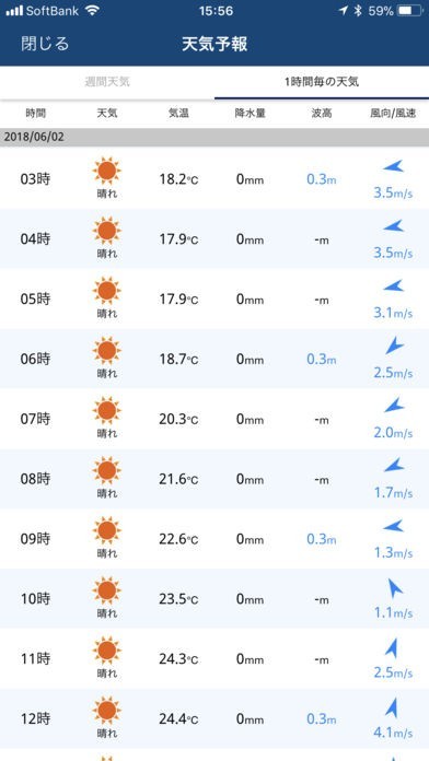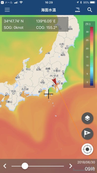天気、風、波、潮汐・潮位を調べることができるので、釣りに行く前に詳しく計画してから行くことができます。また、風向き、海水温をマップ表示してくれるのである程度釣れるポイントを確認することもできます。