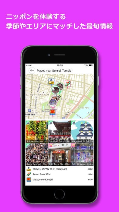 日本各地の見どころやおすすめ観光スポット、寿司・ラーメンをはじめとする日本食情報や桜・紅葉・花火といった季節の旬な情報まで、厳選した情報を全て『無料』でご覧いただけます。