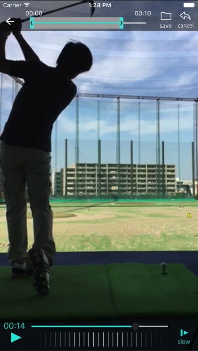 細かなスイング解析機能(スロー再生)があるので、予習にも復習にもなり上達への近道になります。