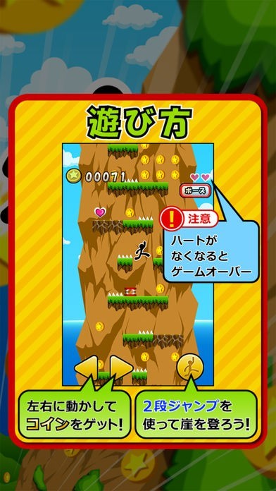 App Storeより引用断崖絶壁に散らばったコインをとりまくれっ!