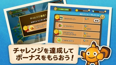 特定の魚を3匹飼う、などのチャレンジを達成すると