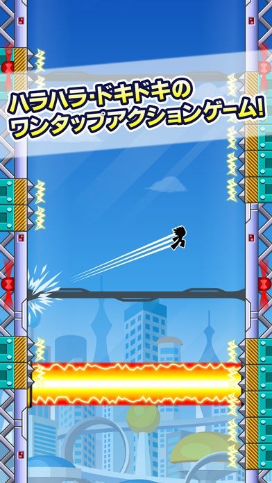 このアプリは主人公の盗賊サスケをタップでジャンプさせて財宝がある超高層ビルの最上階に導くことが目的です。ビルに仕掛けられたさまざまな罠をかわしながら昇っていく必要があります。