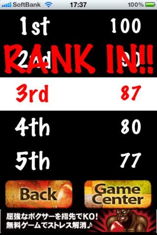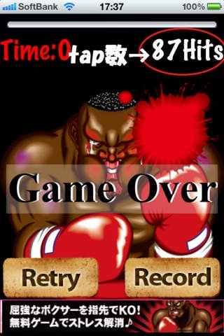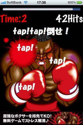 KNOCKOUT BOXERとは相手の顔面を殴りまくって顔面をボコボコにするストレス発散に適したゲームです。その遊び方は15秒の間ひたすらタップするだけです。画面をタップすればするほど相手の顔面がボコボコになっていきます。またこれにはタップ数を競うランキング機能もあります。なのでこの機能を使って友人とタップ数を競って遊ぶ事もできます。ゲーム自体はタップするだけで単純なのですがランキングがある事でランキング上位になりたいと思って夢中になれるのでただゲームをやるよりはずっと楽しめるようになっています。年齢を問わずに遊べるシンプルな操作性でどんな場面でも使えます。
