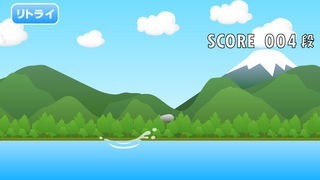 川面に石を投げて遊ぶ昔ながらの遊びを体感できます。画面上の水面に石を斜めに飛ばすことで、簡単にレトロな遊び方を再現できどこにいてもレトロな趣ある遊び方ができます。
