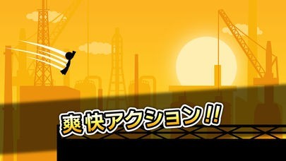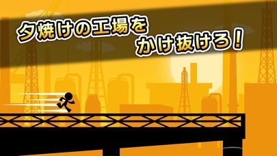 プレイヤーが操作する棒人間の背景は、美しいオレンジ色の夕焼けと工場群です。プレイしているとノスタルジックな雰囲気に浸れます。雰囲気とは対照的に操作はシビアです。故にタイミング良くジャンプした時の爽快感は格別です。