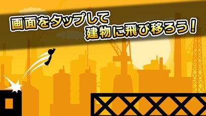 タイミング良く画面をタップすることで棒人間がジャンプし、その場から別の足場に飛び移ります。繰り返すことで距離が延び、棒人間は遠くに移動します。連続でジャンプが決まった時は、何とも言えない達成感があります。