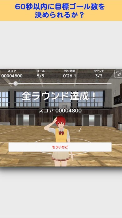 持ち時間は60秒。できるだけ多くのシュートを放ち、規定数のゴールを決めてください。