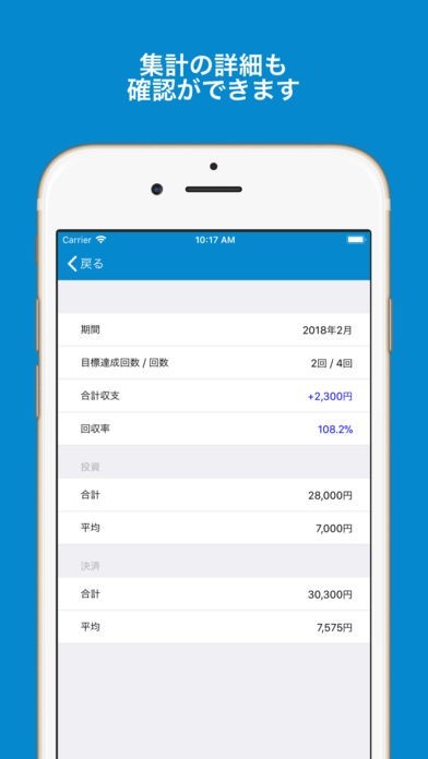 このアプリでは、投資の収支をグラフの形で確認することができるので、どのくらいの利益になっているのか一目で把握することができます。また収支率を計算することもできます。
