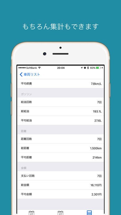 車両によって燃費は大きく違うので、自分で燃費目標値を設定して節約に取り組んでいきます。複数の自家用車を所有している場合は、車両ごとに集計します。平均や合計がわかり、燃費の変化も知ることができて便利です。
