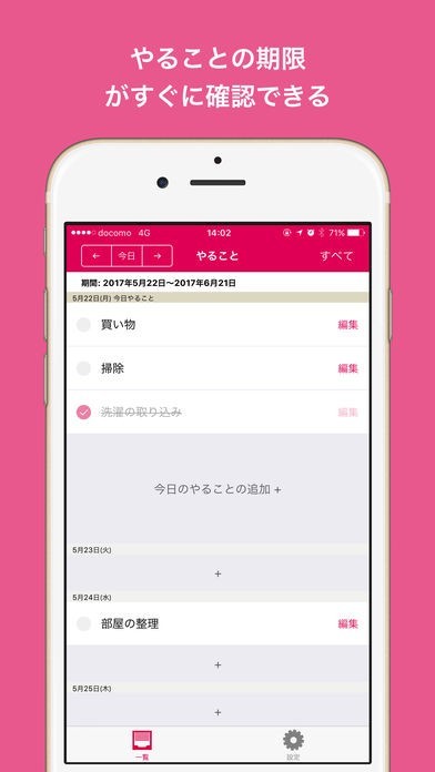 やることリストは、あれこれ書きたくなるものですが、シンプルにやりたいことを登録し、一覧として確認できるのがこのアプリの良さです。余計な機能を排除しておりタスクの見落としを防いでくれます。
