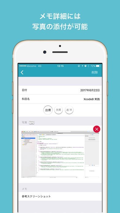 日記形式で授業についてのメモを記録しておくことができます。写真付きで記録しておくことができるので、後々役立つように授業中の黒板の写真を撮影しておいて保存しておくなどにも使えます。