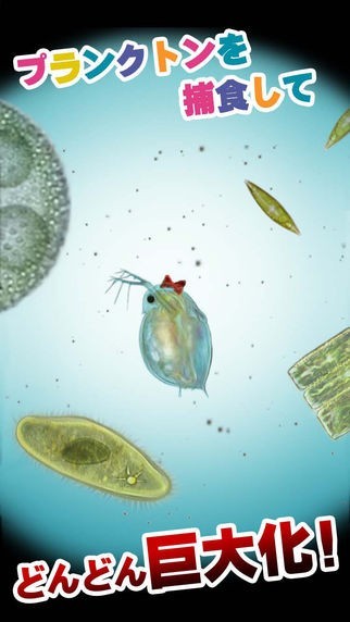 生まれたばかりの体長0.1mmのミジンコにプランクトンを食べさせ、どんどん成長させて世界征服を目指そう!!