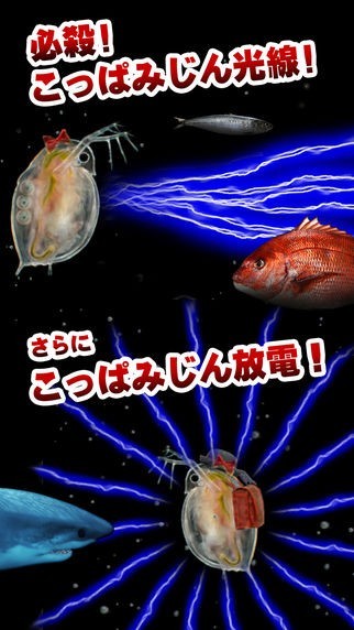 App Storeより引用とある美少女ミジンコが『こっぱみじん光線』を繰り出しながら大怪獣に進化するゲームです。