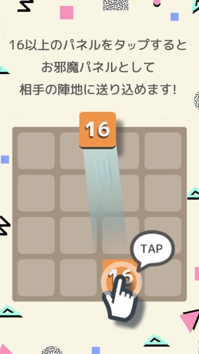 16以上のパネルをタップすると相手にお邪魔パネルとして送り込むことができるよ!