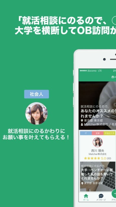 お気に入りの社会人や経験豊かなOBと自由にマッチングする事が可能