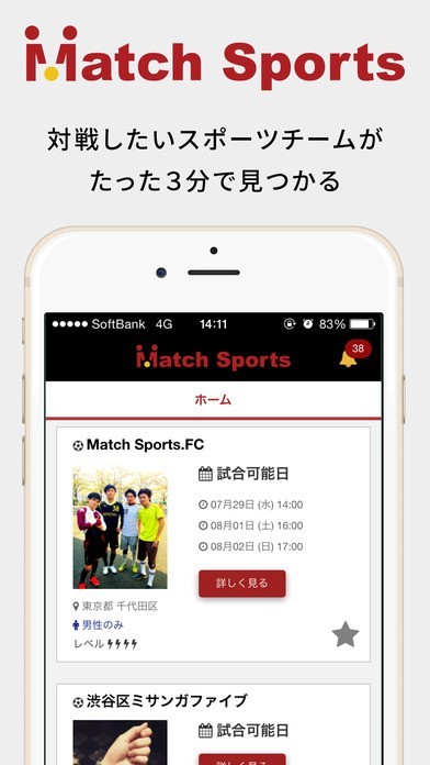 Match Sports:対戦したいフットサルチームが3分で見つかるとは?