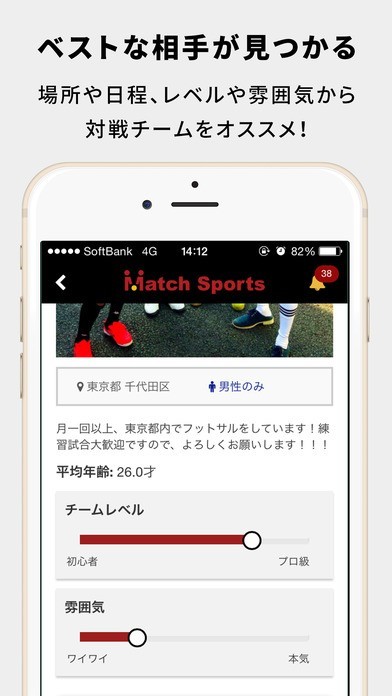 「Match Sports:対戦したいフットサルチームが3分で見つかる」スペック・仕様