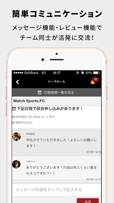 『Match Sports』は、フットサルの対戦チーム探しができるアプリです。 自分たちのチームを登録しておくことで、相手からメッセージが届き、試合のスケジュールを組むことができます。また、相手についてもっと知りたい場合には「トークルーム」でお互いコミュニケーションをとってから試合をすることも可能です。 自分たちの実力をグラフ表示したり、対戦前にどのようなチームなのかを把握しておいてもらうこともできます。様々な情報から、最適な対戦相手を自動でオススメしてくれるので便利です。 また試合が終わったらお互いにレビューを投稿できるのも特徴の一つです。※注:現在アプリの提供は停止しています。