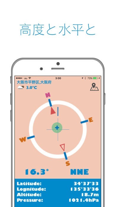 App Storeより引用シンプルでポップ、かつ機能が充実しているコンパスです。