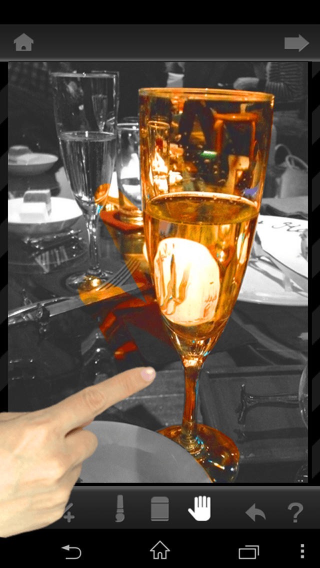 指でなぞると、その部分だけが元の写真の色に戻ります。