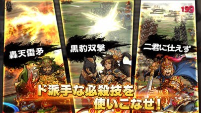 騎馬、弓、槍の三つの兵種ユニットが三すくみの関係になっている本格的なシミュレーションゲームを楽しむことが出来るようになっていて、足止めや火刑などの計略を有効に使用することで戦闘を有利に進めたり、単騎攻撃や全体攻撃などの派手なエフェクトで一発逆転の強力なスキルを駆使して勝利を目指すことが出来るようになっています。