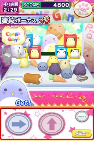 リセットボタンで景品の位置を戻せる!バーチャルパッドでクレーンを上手に操ろう!