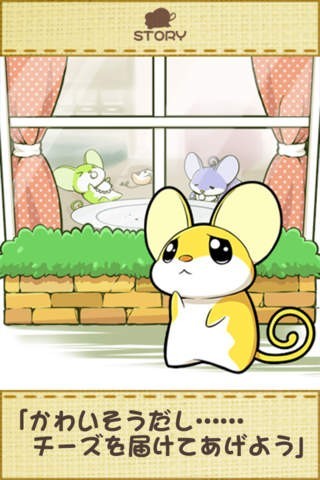 App Storeより引用「お腹が空いたでチュー」空腹で苦しむ子ネズミを助ける為、チーズをGETせよ!