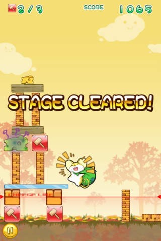 遊び方は簡単。積み上げられた柱を制限回数内に崩してチーズをGET!チーズが画面の外に落ちたり、制限回数内でGETできなかった場合はゲームオーバー。柱を崩す順番やタイミングを考えて全ステージクリアを目指せ!