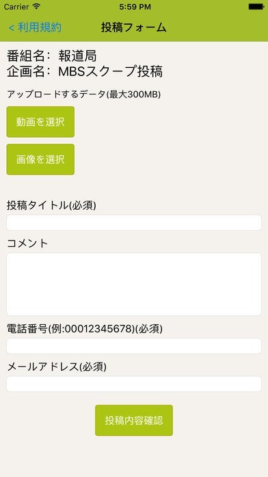 App Storeより引用MBSの投稿企画に簡単に動画や写真を投稿できます。