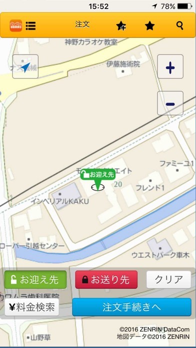 ●お迎えらくらく!地図画面でお迎え先とお送り先を設定し、面倒な説明不要!
